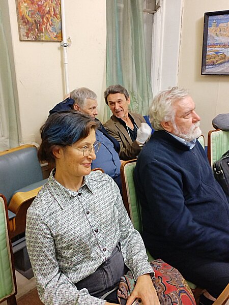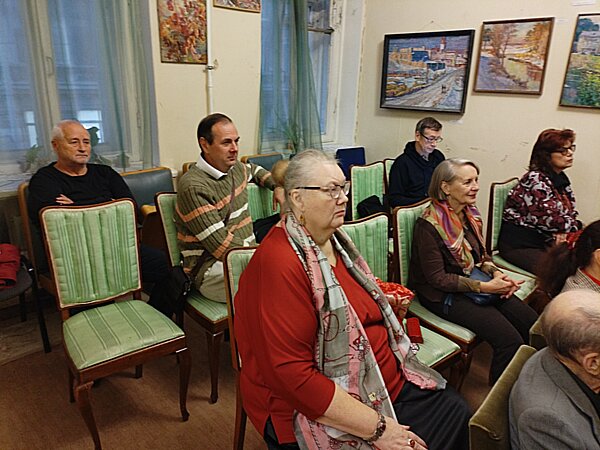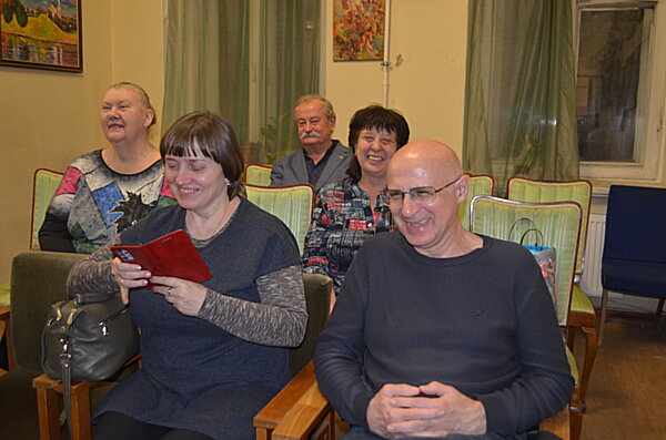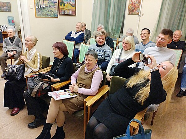 Предлагаем вашему вниманию фоторепортаж с места события. ![]() Л. Соксонова, Ю. Бекаревич, С. Смольянинов ![]() Выступает Сергей Смольянинов ![]() Смольянинов всех радует музыкой...)) ![]() Выступает Юрий Бекаревич ![]() Стихи читает Лидия Соксонова ![]() Все слушают Лидию Соксонову ![]() И вновь Сергей Смольянинов ![]() Смешит Юрий Бекаревич...)) ![]() Афиша мероприятия ![]() Смольянинов продолжает веселить...)) ![]() Юрий Бекаревич и Лидия Соксонова ![]() Концерт окончен ![]() Живое общение творческих людей... ![]() Организатор мероприятия Елена Николаевна Король. День смеха в «Невском альманахе»! 1 апреля в Клубе народного юмора «ЗДОРОВЫЙ СМЕХ» собрались жизнерадостные творческие люди. В этот вечер в редакции старейшего литературного журнала России НЕВСКИЙ АЛЬМАНАХ раздавался смех и гремели аплодисменты – здесь поэты отмечали День смеха! Предлагаем вашему вниманию фоторепортаж с места события. Автор фотографий Сергей Игнатьев. ![]() Жизнерадостные творческие люди Петербурга. ![]() С Днём смеха!! ![]() Открыли встречу музыкальной композицией... ![]() Лидия Соксонова и Сергей Смольянинов ![]() Аплодисменты друзей!!! ![]() Скворцову - подарок! ![]() Информационный уголок ![]() Иронические стихи читает Владимир Скворцов ![]() Жизнерадостные творческие люди! ![]() Выступает Изабелла Николаевна ![]() Юрий Бекаревич ![]() Преданные поклонники здорового юмора! ![]() Софья Миролюбова ![]() Выступает Валерий Егоров ![]() Егоров радует зрителей песней!! ![]() Добрая реакция на хорошее выступление! ![]() Иронические стихи читает Светлана Горецкая ![]() Сергей Смольянинов радует людей пародиями... ![]() Московский поэт Олег Столяров ![]() Ветеран ВМФ Александр Баташев ![]() Выступает Татьяна Сыч ![]() Смешит Юрий Крылов ![]() Людмила Юрьевна Лапина ![]() Порадовал всех Александр Шишкин ![]() Ярко выступила Тома Азимова ![]() Привет из солнечной Грузии передала Амалия! ![]() Вечер украсила Светлана Зубова! ![]() Всех порадовал баснями Владимир Дудров ![]() Стихи читает Ирина Киселёва ![]() Надежда Сандрер ![]() Вечер завершил Самуил Храпков. ![]() Всеобщая радость коллег!!! ![]() И бурные аплодисменты!!! Клуб замечательных людей при журнале НЕВСКИЙ АЛЬМАНАХ. 20 марта у нас в гостях был Игорь Давидович Гуревич – поэт, прозаик, журналист, издатель. Родился в 1960 г. в Архангельске. Окончил Архангельский педагогический институт по специальности учитель русского языка и литературы. Работал директором школы, заведующим кафедрой управления института повышения квалификации работников образования, директором информационного агентства, редактором СМИ, директором по связям с общественностью в авиакомпаниях «Нордавиа» и «Псковавиа», директором по социальным вопросам. За педагогическую деятельность удостоен звания «Отличник народного просвещения». Член Союза писателей России с 2016 г. Автор и ведущий радиопередачи «Книжная лавка» на радио «Поморье» с 2018 г. Вдохновитель и организатор межрегионального конкурса-фестиваля Гринфест «Остров надежды» с 2018 г. Руководитель издательства Архангельского регионального отделения Союза писателей России, куратор студии молодых литераторов «Абрамовский большак». Состоялась презентация новых книг Игоря Гуревича. Целый вечер автор рассказывал о своей творческой судьбе, читал стихи и прозу… Предлагаем вашему вниманию фоторепортаж с места события. Авторы фотографий Сергей Игнатьев и Лилия Сергеева. ![]() Елена За