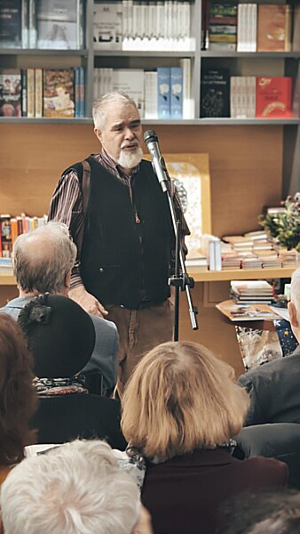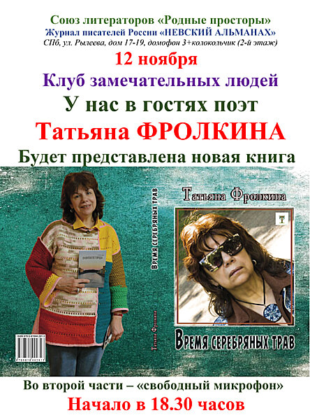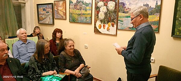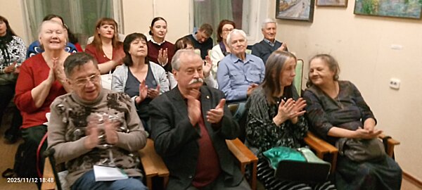Встреча с мастером 10 декабря в конференц-зале Союза литераторов «Родные просторы» (СПб, ул. Рылеева, дом 17-19) под сенью старейшего журнал писателей России НЕВСКИЙ АЛЬМАНАХ в рамках Школы литературного мастерства писатель Андрей БУРОВСКИЙ поделился секретами своего творчества. Андрей Михайлович Буровский – автор 64 опубликованных и подготовленных к печати художественных и научно-популярных книг по русской истории. Автор сценариев 7 научно-популярных фильмов, режиссер и продюсер 6 познавательных фильмов: «Армянский вопрос», «Город на костях», «Химия жизни», «Вселенная Менделеева», «Опасности большого города», «Русский приоритет мирного атома». Автор 208 опубликованных и находящихся в печати научных работ. Предлагаем вашему вниманию фоторепортаж с мероприятия. Автор фото Сергей Игантьев. ![]() Андрей Буровский открывает вечер ![]() Внимательные читатели ![]() Андрей Михайлович продолжает рассказ ![]() Герой вечера делится секретами литературного мастерства ![]() Доброжелательные гости Татьяна Фролкина и Михаил Иноземцев ![]() Увлекательный рассказ ![]() Вопрос из зала ![]() Автор разъясняет свою мысль ![]() Андрей Буровский продолжает... ![]() Людмила Лапина рассказывает о книге Андрея Буровского ![]() Восторженный отзыв ![]() Андрей Буровский представляет свои книги ![]() Рассказ автора ![]() фото на память Тёплая встреча с редакцией и авторами журнала В 2025 году по всей России авторы и читатели отмечают 200-летний юбилей журнала «Невский альманах» и шлют нам фоторепортажи с места событий. Нас радует, что подписчиков на журнал становится всё больше – это свидетельствует о том, что редакция на правильном пути! 2 декабря в Книжной лавке писателей на Невском, 66 состоялась творческая встреча с редколлегией и авторами старейшего литературного журнала России «Невский альманах» по случаю 200-летнего юбилея издания. Ведущими мероприятия были Ирина Враник и Марианна Соломко. Предлагаем вашему вниманию фоторепортаж с места события. Павел Маркин, Алексей Бойцов и Марианна Соломко. ![]() Жизнерадостные ведущие ![]() У ведущих на столе журнал 2025 года... ![]() Первый номер 19 века ![]() Слово - Главному редактору... ![]() У микрофона Владимир Скворцов ![]() Творческая интеллигенция ![]() Выступает Владимир Скворцов ![]() Валерий Попов и Михаил Аникин ![]() Владимир Скворцов продолжает... ![]() В зале нет свободных мест... ![]() Выступает Владимир Шемшученко ![]() Александра Тарновская ![]() Выступает Николай Астафьев ![]() Ирина Враник ![]() У микрофона Михаил Аникин ![]() Павел Маркин за работой... ![]() Поэт Сергей Зайцев ![]() Марианна Соломко ![]() Выступает Андрей Буровский ![]() Юлия Реутова ![]() Фото на память... ![]() Общение после мероприятия... ![]() Фото друзей... ![]() До новых встреч!! Клуб замечательных людей при журнале НЕВСКИЙ АЛЬМАНАХ. 12 ноября в Клубе замечательных людей состоялась творческая встреча с петербургской поэтессой Татьяной Фролкиной, которая недавно выпустила книгу стихов в издательстве «Союз литераторов «Родные просторы». Предлагаем вашему вниманию фоторепортаж с места события. Автор фотографий Сергей Игнатьев. ![]() Открывает мероприятие Людмила Лапина ![]() Татьяна Фролкина рассказывает о себе и своём творчестве ![]() Информационный уголок ![]() Стихи из новой книги... ![]() Друзья и коллеги Фролкиной ![]() Фролкина продолжает... ![]() Зрители впитывают стихи Фролкиной ![]() Объявляется =Свободный микрофон