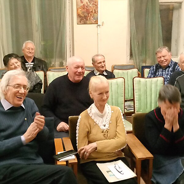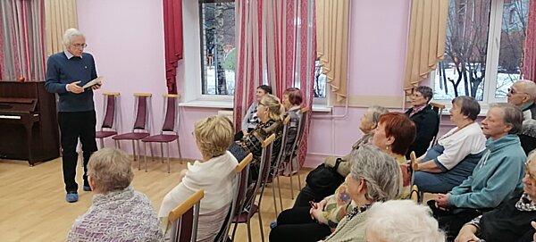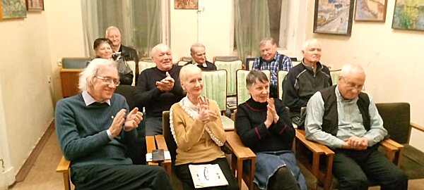 События c заседания клуба сатиры и юмора«Здоровый смех»Смотрите также:Основные события из жизни журнала«Невский Альманах»События c Фестиваля поэзии и авторской песни«Встречи друзей»ЗДОРОВЫЙ СМЕХ на улице Рылеева 2 декабря в конференцзале редакции журнала «НЕВСКИЙ АЛЬМАНАХ» раздавался смех и гремели аплодисменты! Это в Клубе народного юмора «ЗДОРОВЫЙ СМЕХ» традиционно в первый вторник месяца собрались жизнерадостные творческие люди. Мероприятие на этот раз провёл ветеран ВМФ Самуил Храпков. Предлагаем вашему вниманию фоторепортаж с места события. Автор фотографий Сергей Игнатьев. ![]() Информационный уголок ![]() Ведущий вечера Самуил Храпков ![]() Милан Тешич - друг и автор Клуба юмора ![]() Смольянинов наполняет музыкой зал... ![]() Первой выступила Лидия Соксонова ![]() В зале - доброжелательные коллеги... ![]() Смешит ветеран ВМФ Александр Баташев. ![]() Смешные истории от Хафиза Шахмаметьева ![]() Восторженные зрители! ![]() Смешит Юрий Маркин ![]() Браво, Юрий!!! ![]() Выступает Алла Константинова ![]() Геннадий Анатольевич Цветков ![]() Выступает Самуил Храпков ![]() Неизменный смех в зале... ![]() Бурные аплодисменты!!! Клуб народного юмора омолаживает… В полдень 25 ноября в отделении дневного пребывания на Сикейроса, дом 21, корп. 3 с большим успехом выступили яркие представители Клуба народного юмора «Здоровый смех», который более 15 лет работает при легендарном журнале НЕВСКИЙ АЛЬМАНАХ. Организатором выездного выступления стала работник отделения, друг и автор журнала Елена Николаевна Король. Предлагаем вашему вниманию фоторепортаж с места события. ![]() Выступает Сергей Смольянинов ![]() Улыбки на лицах отдыхающих...)) ![]() Смешит Самуил Храпков ![]() Храпков продолжает... ![]() Выступает Лидия Соксонова... ![]() Композитор Сергей Смольянинов играет на фортепьяно... ![]() Пенсионеры бросились танцевать... ![]() Праздник омолаживающего смеха удался!!! ![]() Организатор мероприятия - Елена Николаевна Король ЗДОРОВЫЙ СМЕХ в день Народного единства 4 ноября в конференцзале редакции журнала «НЕВСКИЙ АЛЬМАНАХ» раздавался смех и гремели аплодисменты! Это в Клубе народного юмора «ЗДОРОВЫЙ СМЕХ» традиционно в первый вторник месяца собрались жизнерадостные творческие люди. Предлагаем вашему вниманию фоторепортаж с места события. Автор фотографий Сергей Игнатьев. ![]() Информационный уголок ![]() Открыл встречу поэт Владимир Скворцов ![]() Жизнерадостные люди! ![]() Первым выступил Юрий Бекаревич ![]() Смех в зале!!! ![]() Татьяна Фролкина со своей новой книгой... ![]() Ждут своей очереди для выступления. ![]() Фролкина продолжает... ![]() Аплодисменты Татьяне Фролкиной! ![]() Выступает Андрей Мурай ![]() Звычат пародии из книги... ![]() Радостные аплодисменты коллег!! ![]() Добрые слова Скворцова в поддержку творчества Мурая... ![]() Здоровый смех в зале!!! ![]() Поклонник творчества Мурая 30 лет хранит его книгу... ![]() Слово взял Василий Байковский ![]() Он тоже порадовал людей пародиями... ![]() Выступает Наталья Берс... ![]() Выступает Владимир Замышляев ![]() Владимир Дудров читает басни... ![]() Свои стихи кричит Олег Столяров! ![]() Народу грустно это слышать... ![]() Положение пытается спасти Станислав Сандалов ![]() Спасает юмор Андрей Мурай. ![]() Подарок Скворцову от мурая... ![]() Радуется Фролкина! ![]() А сейчас прозвучат стихи и басни Юрия Тейха ![]() Выступает Галина Николаевна Кречман ![]() Звучат произведения Юрия Терха... ![]() Аплодисм