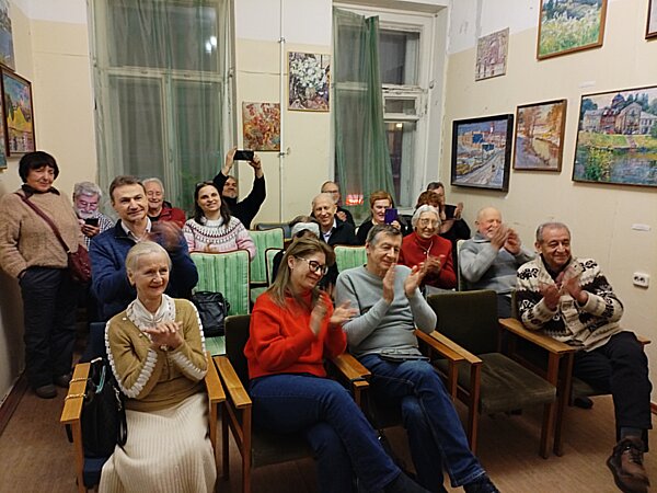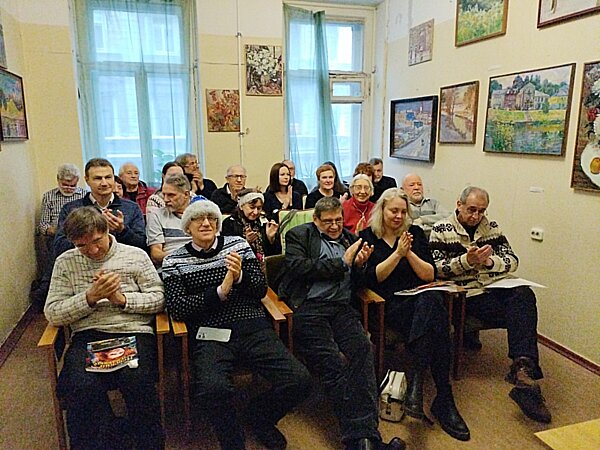 События c заседания клуба сатиры и юмора«Здоровый смех»Смотрите также:Основные события из жизни журнала«Невский Альманах»События c Фестиваля поэзии и авторской песни«Встречи друзей»КЛУБ ЖИЗНЕРАДОСТНЫХ ЛЮДЕЙ при журнале «НЕВСКИЙ АЛЬМАНАХ» 6 января в конференц-зале редакции журнала «НЕВСКИЙ АЛЬМАНАХ» раздавался смех и гремели аплодисменты! Это в Клубе народного юмора «ЗДОРОВЫЙ СМЕХ» традиционно в первый вторник месяца собрались жизнерадостные творческие люди из разных регионов России и не только... Из Сербии приехал друг и автор журнала Милан Тешич. Предлагаем вашему вниманию фоторепортаж с места события. Авторы фотографий Сергей Игнатьев, Евгений Скородумов, Рафаэль Максутов, Николай Соколов. ![]() Композитор Сергей Смольянинов зазывает людей музыкой ![]() Первые гости... ![]() Информационный уголок ![]() Полный зал! ![]() Владимир Скворцов открывает заседание Клуба ![]() Новогоднее приветствие зачитывает Самуил Храпков ![]() С новогодними стихами Валерий Яшин ![]() Валерий Васильевич Яшин ![]() Весёлый рассказ читает Константин Зайцев ![]() Аплодисменты!!! ![]() Стихи читает Анастасия Зайцева ![]() Звучат весёлые стихи...)) ![]() Выступает Александр Рокин ![]() Звучит весёлая песня! ![]() Улыбки на лицах коллег ![]() Выступает Андрей Князьков ![]() В зале цветут улыбки... ![]() Выступает Сергей Ачильдиев ![]() Аплодисменты Ачильдиеву!!! ![]() Пародии читает Сергей Смольянинов ![]() Выступает автор журнала Олег Столяров (Москва). ![]() Звучат стихи из новогоднего номера ![]() Татьяна Михайловна Русинова ![]() Заслуженные аплодисменты!! ![]() Николай Соколов читает стихи ![]() Выступает Валерий Половинкин ![]() Лидия Соксонова ![]() Стихи читает Михаил Каневский ![]() Татьяна Сыч ![]() Милан Тешич (Сербия). ![]() Александр Шишкин ![]() Стихи читает Михаил Ильков ![]() С рассказом выступил Александр Крячун ![]() Рассказ привлёк внимание... ![]() Выступает Сергей Нестор ![]() Подошла очередь выступить и Скворцову... ![]() Звучат иронические стихи... ![]() Улыбки вдохновляют поэта...)) ![]() Скворцов продолжает... ![]() Счастье - когда стихи принимают!!! ![]() Завершил вечер афоризмами Самуил Храпков ![]() Фото на добрую память ![]() Всем СПАСИБО!!! ПРОШЕДШИЕ СОБЫТИЯ С ЗАСЕДАНИЯ КЛУБА САТИРЫ И ЮМОРА «ЗДОРОВЫЙ СМЕХ» |