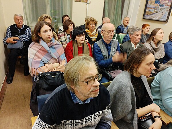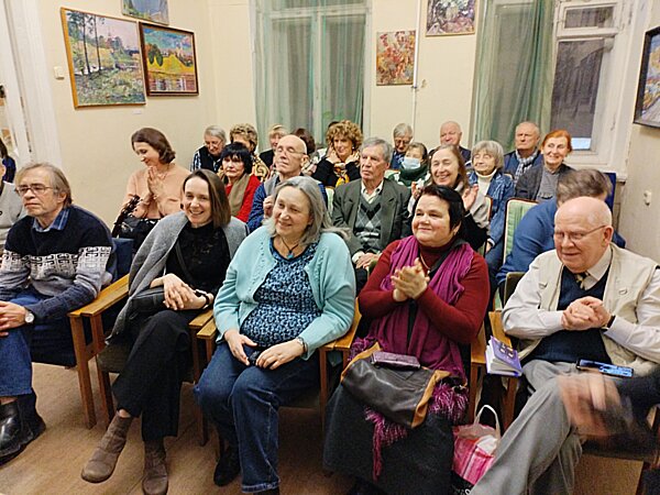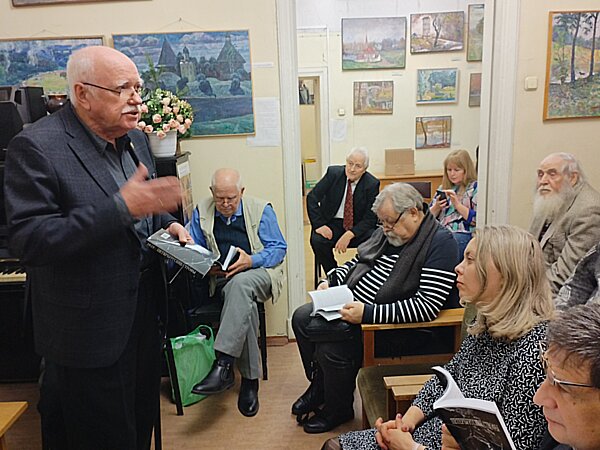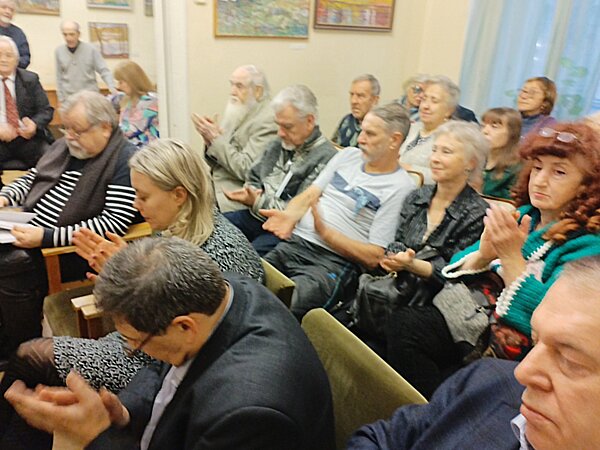 В клубе замечательных людей 27 декабря в помещениях Союза литераторов «Родные просторы» тепло и душевно прошла презентация альманаха «Петербургские строфы». Вёл мероприятие редактор-составитель Михаил Аникин. Авторы популярного издания читали свои произведения. Предлагаем вашему вниманию фоторепортаж с мероприятия. Авторы фотографий: Владимир Желтов, Ирина Враник, Сергей Игнатьев. ![]() Информационный уголок ![]() Авторы "Петербургских строф" ![]() Михаимл Аникин открывает презентацию ![]() Свежий номер альманаха ![]() Певым выступил Глеб Артханов ![]() В зале тишина... ![]() Артханов читает стихи из альманаха... ![]() Старейший автор альманаха... ![]() Участники презентации... ![]() Выступает Николай Астафьев ![]() Очередной автор альманаха ![]() Звучат стихи... ![]() Аплодисменты!! ![]() Стихи из альманаха читает Ирина Враник ![]() Выступает доктор философских наук Борис Дверницкий ![]() Восторженные слушатели ![]() Дверницкий продолжает... ![]() Очередная участница презентации ![]() Вдумчивые слушатели... ![]() Счастливый автор альманаха Людмила Лапина ![]() Алексей Любегин читает стихи ![]() В переполненном зале... ![]() Стихи из альманаха читает Евгений Лукин... ![]() Выступает очаровательная Марианна Соломко ![]() Звучат стихи из альманаха... ![]() Новогодний Сергей Смольянинов ![]() Гость из Москвы Олег Столяров ![]() Гость из Москвы Юрий Хрущём ![]() Звучат жизнеутверждающие стихи... ![]() Михаил Аникин завершает мероприятие ![]() Фото на память ![]() Авторы с редактором-составителем ![]() Лучшие издания России Юбилейный творческий вечер 12 декабря с большим успехом прошёл юбилейный творческий вечер петербургской поэтессы Елены Жабинковский. Вечер организовала и вела Лилия Старикова. Участие в празднике приняли поэты: Борис Краснов, Николай Астафьев, Валентина Царёва, Людмила Гарни, Александр Темников, Людмила Новикова, Маргарита Токажевская, Самуил Храпков, Ольга Козловская, Мария Амфилохиева… Предлагаем вашему вниманию фоторепортаж с мероприятия. Автор фотографий – Сергей Игнатьев. ![]() Елена Жабинковская читает стихи... ![]() Жабинковская и Старикова ![]() В зале друзья и коллеги... ![]() Елена Жабинковская продолжает... ![]() Николай Астафьев любит записывать мысли... ![]() Звучат стихи... ![]() Поэты и прозаики... ![]() Песню исполняет Борис Краснов ![]() Аплодисменты ![]() Поёт Наталья Астраханцева ![]() Кино-фото съёмка ![]() И бурные аплодисменты!!! ![]() Елена благодарит всех, кто пишёл к ней на вечер... ![]() Благодарные зрителя!!! ![]() Два могучих талана - Елена Жабинковская и Ольга Козловская ![]() Книги и журналы... Тёплая встреча с редакцией и авторами журнала «Невский альманах» В 2025 году по всей России авторы и читатели отмечают 200-летний юбилей журнала «Невский альманах» и шлют нам репортажи и фото с мест событий. Нас радует, что подписчиков на журнал становится всё больше – это свидетельствует о том, что редакция на правильном пути! 16 ноября в библиотеке имени Николая Рубцова (СПб, улица Шотмана, дом 7/1) состоялась творческая встреча с поэтами, авторами-исполнителями, публицистами и прозаиками Санкт-Петербурга – авторами легендарного издания. Ведущими встречи были Главный редактор журнала НЕВСКИЙ АЛЬМАНАХ Владимир Скворцов и писательница Лилия Старикова. Предлагаем вашему вниманию фоторепортаж с места события. Авторы фотографий: Сергей Игнатьев, Лилия Старикова и Марианна Соломко. ![]() Открыл встречу Владимир Скв