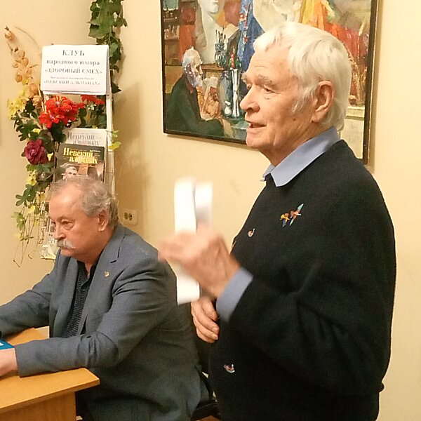 События c заседания клуба сатиры и юмора«Здоровый смех»События c Фестиваля поэзии и авторской песни«Встречи друзей»КЛУБ ЖИЗНЕРАДОСТНЫХ ЛЮДЕЙ при журнале «НЕВСКИЙ АЛЬМАНАХ» 3 марта в конференц-зале редакции журнала «НЕВСКИЙ АЛЬМАНАХ» раздавался смех и гремели аплодисменты! Это в Клубе народного юмора «ЗДОРОВЫЙ СМЕХ» традиционно в первый вторник месяца собрались жизнерадостные творческие люди. Предлагаем вашему вниманию фоторепортаж с места события. Автор фотографий Сергей Игнатьев. ![]() Информационный уголок ![]() Творческие люди Петербурга ![]() Владимир Скворцов открывает заседание Клуба ![]() Первым выступил Александр Баташев... ![]() Ветеран ВМФ А.П. Баташев ![]() Верные друзья Клуба - Скородумов и Половинкин ![]() Выступает Татьяна Сыч ![]() Аплодисменты!!! ![]() Олег Викторович Солод ![]() Мастер юмора - Олег Солод ![]() Выступает Евгений Суханов ![]() Ценители юмора! ![]() Выступает Владимир Скворцов ![]() Друзья и коллеги... ![]() Звучат иронические стихи... ![]() Выступает Василий Байковский ![]() Люди, умеющие интересно жить! ![]() Василий Байковский продолжает... ![]() Выступает Татьяна Русинова... ![]() Ценители юмора! ![]() Николай Соколов ![]() Аплодисменты Соколову!!! ![]() Выступает Сергей Смольянинов ![]() Юрий Решетников и Ксения Белицкая ![]() В свежем номере журнала - коалиция желающих шакалов... ![]() Веками европейских шакалов бьют, но они рыщут по всему свету... ![]() Звучит басня Владимира Дудрова... ![]() Выступает Елена Король ![]() Очаровательная поэтесса! ![]() Светлана Кащук ![]() Валерий Половинкин намекает... ![]() Сам же и пьёт... ![]() Звучат иронические стихи... ![]() Завершил вечер Владимир Семёнов... В КЛУБЕ МАСТЕРОВ ПЕРА 25 февраля состоялось очередное занятие в «Школе литературного мастерства». Своими знаниями и творческим опытом в этот вечер делилась Юлия Игоревна Андреева. Она представила собравшимся свой новый поэтический сборник «Дождём и ветром» . После перерыва «свободным микрофоном» воспользовались: Сергей Нестор, Виктор Исаков, Александр Темников, Ирина Янкова, Сергей Зайцев, Галина Материй и Владимир Скворцов. Предлагаем вашему вниманию фоторепортаж с места события. Автор фотографий – Сергей Нестор. ![]() Юлия Андреева ![]() Андреева и руководитель Школы Людмила Лапина ![]() Информационный уголок ![]() Книги Юлии Андреевой ![]() Юлия Андреева рассказывает... ![]() Поклонники творчества Юлии Андреевой ![]() Новая книга Юлии Андреевой ![]() Звучат стихи из книги... ![]() Поклонники очарованы!!! ![]() И вновь стихи... ![]() Брово Андреевой!!! ![]() После перерыва - свободный микрофон ![]() Стихи читает Сергей Нестор ![]() Виктор Исаков ![]() Ирина Янкова ![]() Поэт Сергей Зайцев ![]() Галина Материй ![]() Александр Темников ![]() Закончил выступления Владимир Скворцов ![]() Прощальные улыбки...)) Встреча с мастером 11 февраля в конференц-зале Союза литераторов «Родные просторы» (СПб, ул. Рылеева, дом 17-19) под сенью старейшего журнал писателей России НЕВСКИЙ АЛЬМАНАХ писатель Александра Чеснокова (псевдоним О'Санчес) поделился секретами своего творчества. Предлагаем вашему вниманию фоторепортаж с места события. Авторы фотографий Сергей Игнатьев и Наталья Берс. ![]() Александр Чесноков (О'Санчес) ![]() Книги Александра Чеснокова (псевдоним О'Санчес) ![]() Информационный уголок ![]() Мастер ведёт занятие... ![]() Из-за аварии отключили отопление, но людей это не пугает... ![]() Преданные поклонники современной литературы ![]() Мастер 