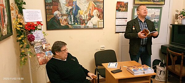 Ветеран войны в Афганистане о ветеране Великой Отечественной… Презентация шестой книги поэта Станислава Сандалова 2 ноября в редакции журнала «Невский альманах» состоялась презентация книги о войне, которая написана по рассказам дивизионного разведчика Зиновия Леонидовича Меркина – почётного жителя Санкт-Петербурга. В зале собрались участники боевых действий, ветераны армии и флота, прозаики, поэты и публицисты… После того, как Станислав Сандалов закончил чтение глав своего нового труда, своими впечатлениями о книге поделились Владимир Скворцов, Олег Столяров, Алла Таирова, Татьяна Черных, боевой товарищ поэта Сандалова по Афганистану. Встреча прошла в тёплой дружественной обстановке. Сандалов Станислав Германович родился в Казани. После окончания школы поступил в Театральное училище на актёрский факультет. Со второго курса был призван в ряды СА. Служил в Афганистане командиром гаубицы Д-30. Был легко ранен, в результате получил тяжёлую гангрену ноги. После излечения вернулся к службе. В 1989 году закончил Театральное, по распределению прибыл в Ленинград в театр-студию "Карусель", отработал актёром до июля 1992 года. Окончил психолого-педагогический факультет РПГУ им. А. Герцена в 2000 г. Издал 5 поэтических книг о войне. Лауреат литературных премий им. Генералиссимуса А. В. Суворова и А. Т. Твардовского, член Многонационального Содружества писателей. Предлагаем вашему вниманию фоторепортаж с места события. Автор фотографий Сергей Игнатьев. ![]() Сандалов читает главы из книги ![]() афиша мероприятия ![]() Книги Станислава Сандалова ![]() Автор читает своё произведение... ![]() Друзья и коллеги писателя... ![]() Сандалов продолжает... ![]() Подросток знакомится с книгой Сандалова... ![]() Звучат проникновенные стихи... ![]() Аплодисменты Сандалову ![]() О достоинствах книги говорит кфн Олег Столяров. ![]() Впечатланиями о книге делится Татьяна Черных ![]() О достоинствах книги Владимир Скворцов... ![]() Впечатлениями делится ветеран боевых действий... ![]() Аплодисменты автору книги!!! ПОЭТИЧЕСКОЕ ПРОЩАНИЕ С ЛЕТОМ… 6 сентября в библиотеке им А.В. Молчанова (СПб, Ленинский пр., дом 115) старейший журнал России "НЕВСКИЙ АЛЬМАНАХ" собрал своих верных авторов и друзей: поэтов и авторов-исполнителей, чтобы провести в этот тёплый солнечный день литературно-музыкальный концерт "ЛЕТО ЗВЁЗДНОЕ, БУДЬ СО МНОЙ!" Перед зрителями выступили: Людмила Гарни, Светлана Горецкая, Жанна Комлева, Игорь Славич, Марианна Соломко, Николай Соколов, Марина Ермошкина, Александр Рокин Маргарита Кузнецова, Владимир Гамаль, Галина Демченко, Юрий Крылов, Любовь Тарасова-Никитина. Звучали чудесные стихи и песни о лете, таком коротком и всегда долгожданном, особенно в нашем городе. Концерт получился – по отзывам зрителей – тёплым и задушевным. А иначе и не бывает, когда всех под своим крылом объединяет журнал "НЕВСКИЙ АЛЬМАНАХ"!!! Благодарим всех наших друзей за участие, за тепло своей души и подаренное прекрасное настроение! Журнал благодарит руководство библиотеки за возможность проведения концерта на этой шикарной оборудованной сцене! Отдельное спасибо Славе Ильиничне Каштановой за видеосъёмку! До новых встреч! Предлагаем вашему вниманию фоторепортаж с места события. Авторы фотографий Сергей Игнатьев и Владимир Туренко. ![]() Выступает Людмила Гарни ![]() . Марианна Соломко с любимым журналом ![](
